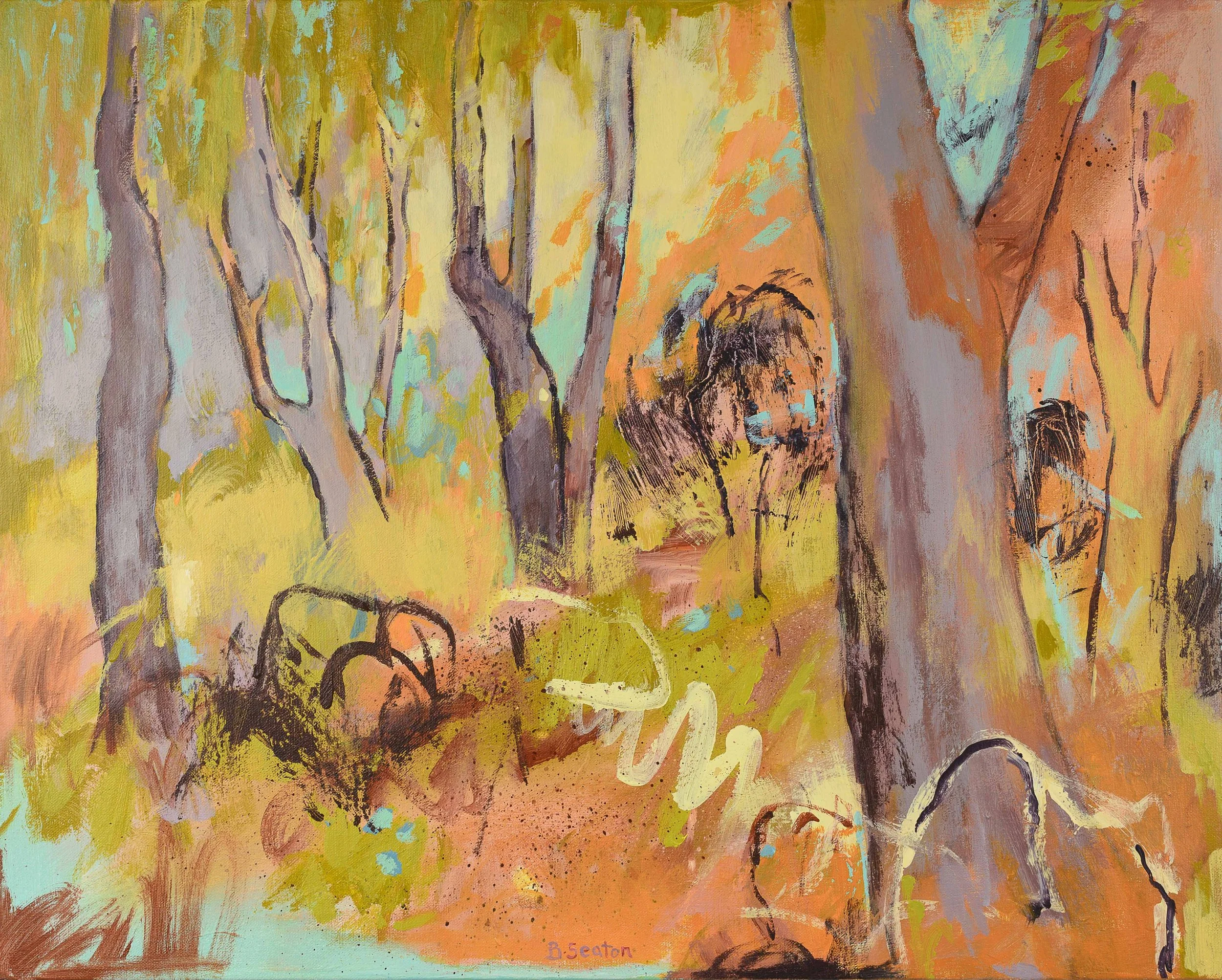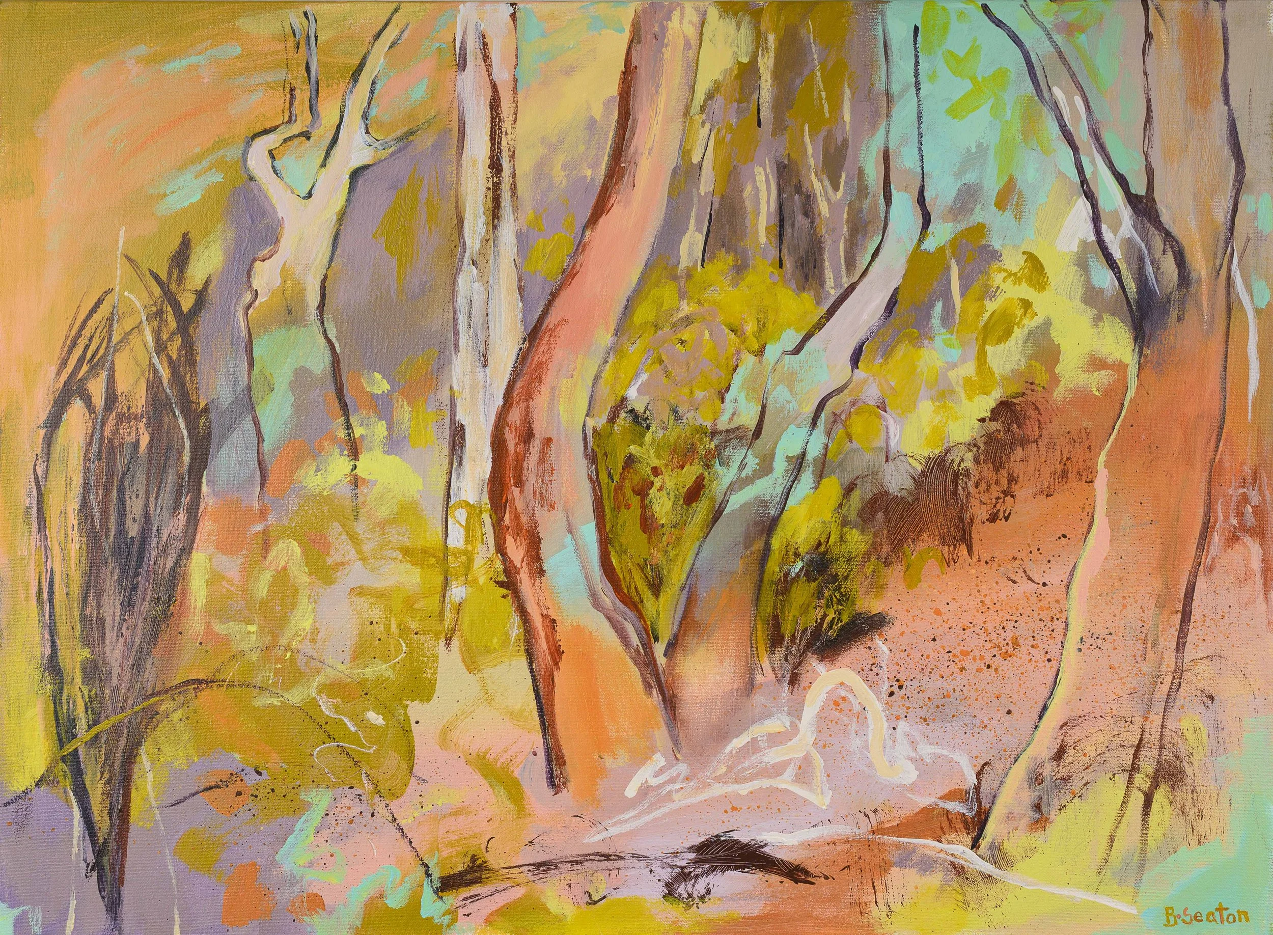 Bridget Seaton’s solo exhibition of paintings and original prints depicts her firsthand experiences of the South West’s woodlands, coastal habitats, wetlands and forests. The work addresses the fluctuating state of the bush in its’ constant state of renewal and decay. A celebration of the resilience of our natural environment through expressive colour and mark making.